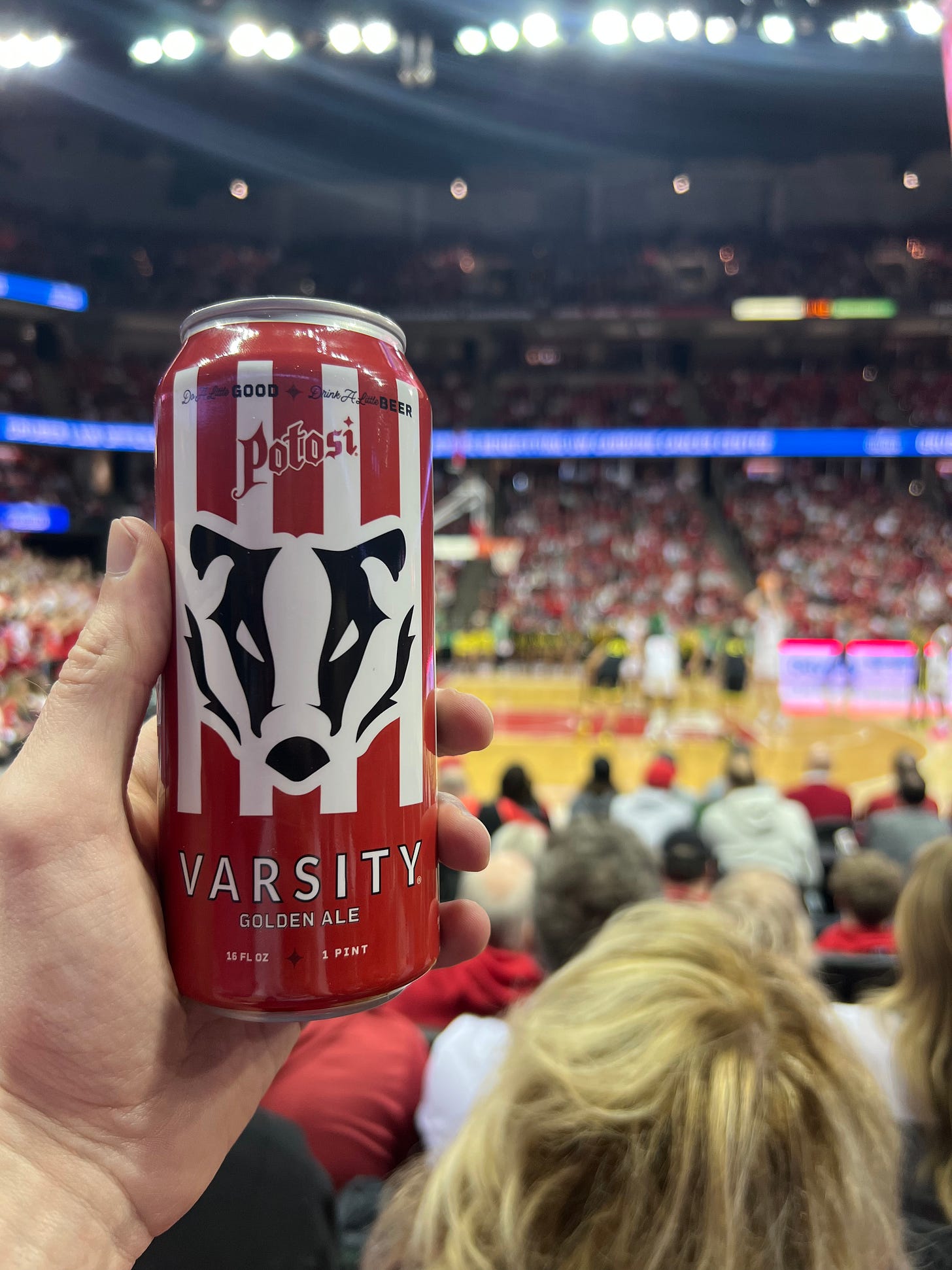 Saturday started with heading to the Kohl Center to watch Wisconsin men’s basketball take on Oregon. I originally wasn’t going to buy a beer at the game, but when the Badgers are playing it’s only right to enjoy it with a can of Potosi’s Varsity Golden Ale. It didn’t help Wisconsin win, as Oregon came from behind by like 15 to win it in overtime.