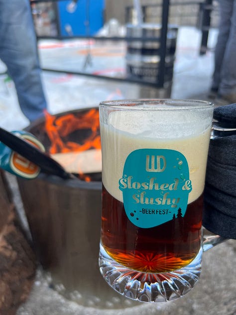 Flights consumed, it was time to have a bit of outdoor fun at Working Draft’s Sloshed and Slushy Beer Fest. They had 12 new beers on tap for the weekend festivities. And if you bought the specialty mug, you’d get $1 off all pours and be able to get your beer poked with a hot poker. I ended up getting poked around 3 times while hanging around the outdoor fire pit. I tried my hand at keg curling, which was harder than I expected but a lot of fun too. The best beer I had here was probably the Pocket Brat, Rauch Helles Doppelbock. I love a good smoked beer, and when you make it a bock, it’s just calling my name.