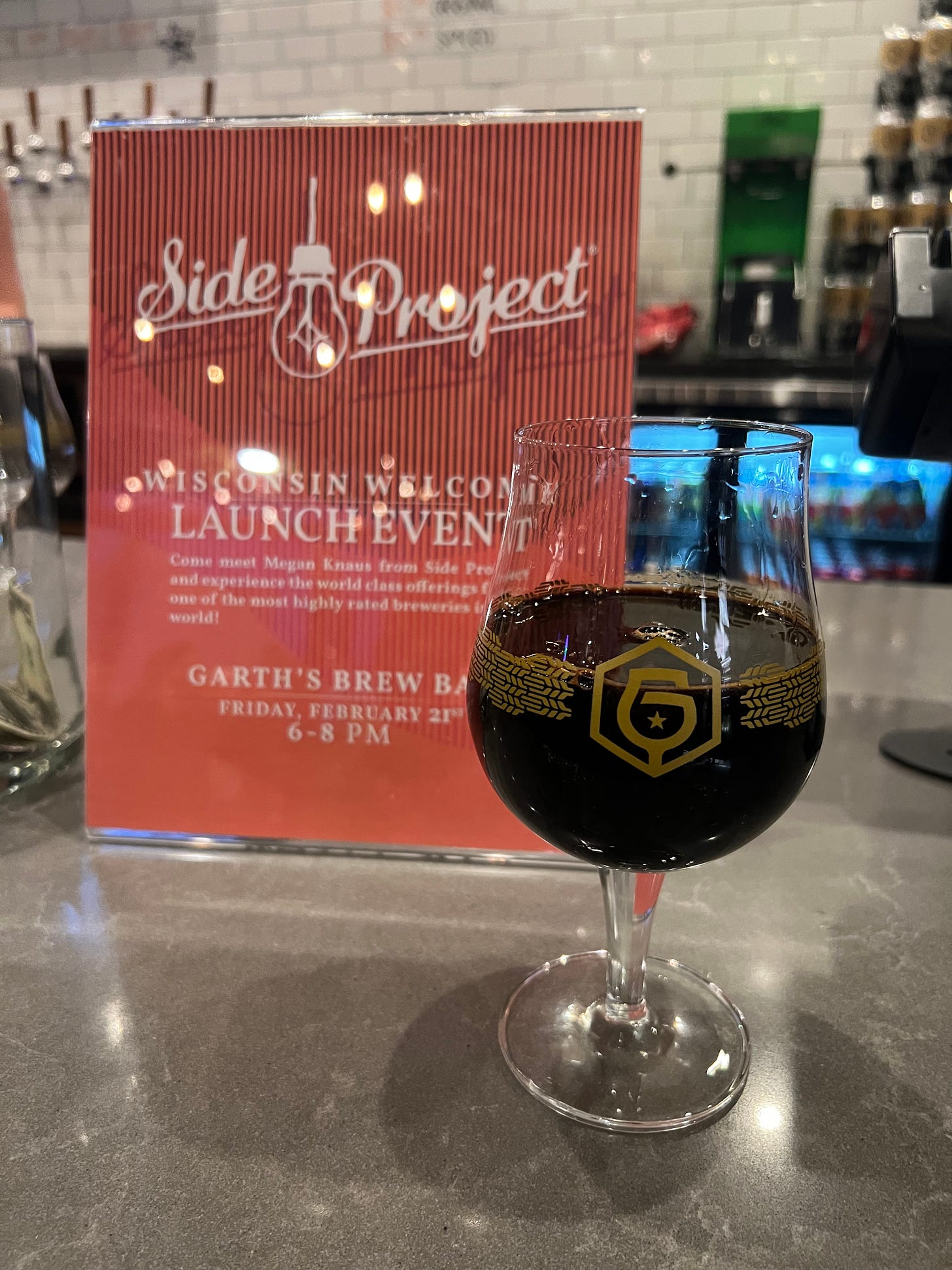 The first stop of the night was to meet some friends at Garth’s Brew Bar for the Side Project Brewing launch party. This is where I may have made my first mistake of the night by ordering an 8oz pour of the 10.4% abv Horchata stout. Add to that samples or O.W.K and 10-year barleywine, two more boozy beers, and I was starting to feel it even though I had had a full dinner before heading out. After Garth’s, it was over to BarleyPop for more big beers to kick off their 8th anniversary weekend with a Revolution Brewing tap takeover. Luckily, they had a complimentary Chicago-style hot dog bar that I partook of to help soak up some of the booze. The 5oz pour of Double Barrel V.S.O.R. was the top drink of the night, but at 16.4% abv, I knew I would feel it a little the next day.